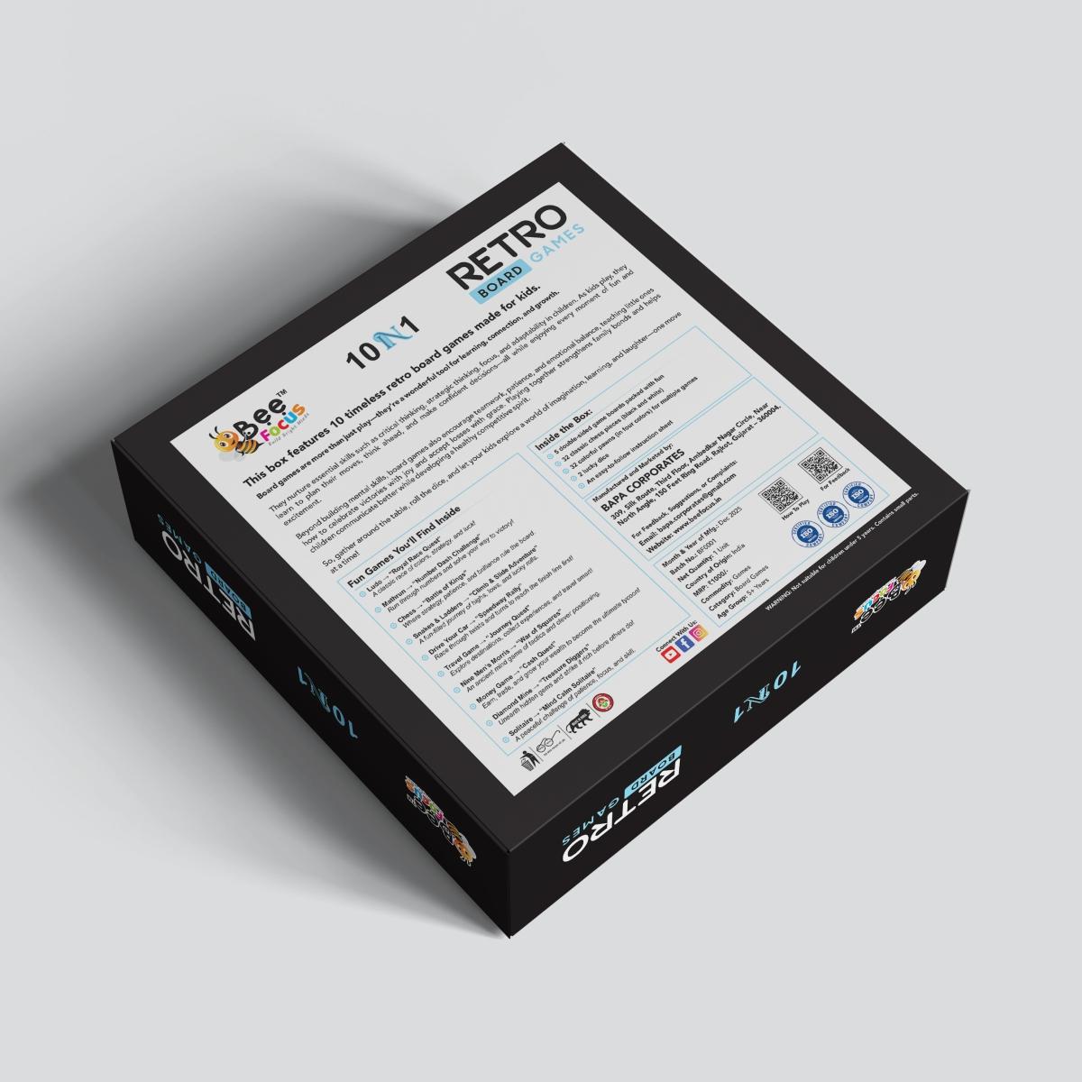 BeeFocus™ 10 in 1 Retro Board Games is a thoughtfully designed educational game set that brings together 10 timeless classic board games in one compact box. Created especially for kids, this collection helps develop logical thinking, strategy, focus, patience, and social skills through fun, screen-free play.